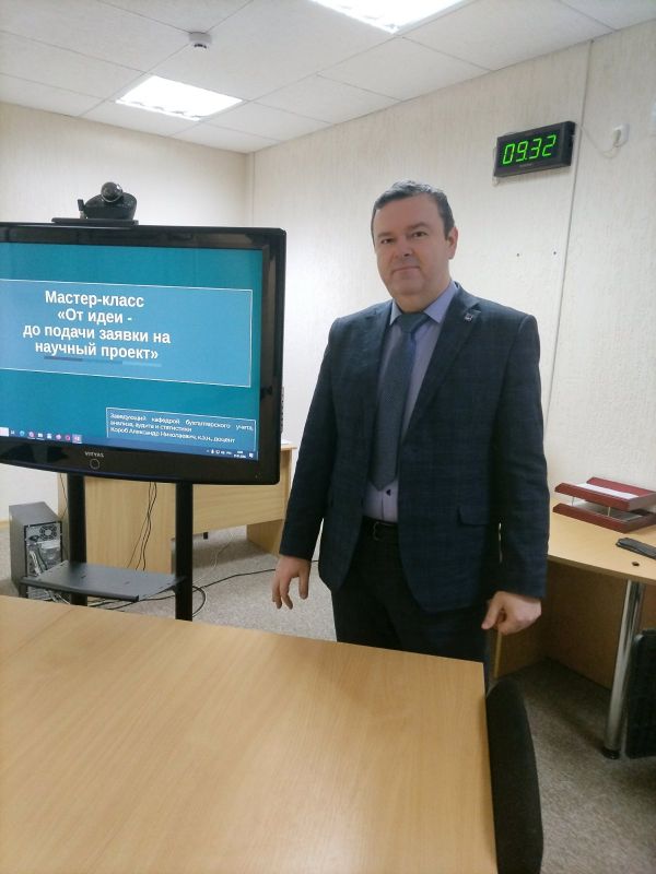 21 января 2026 года заведующий кафедрой бухгалтерского учета, анализа, аудита и статистики Александр Николаевич Короб провел для студентов и преподавателей мастер-класс «От идеи — до подачи заявки на научный проект», в ходе которого подробно рассмотрел алгоритм подачи заявки на участие в конкурсах научных проектов Белорусского республиканского фонда фундаментальных исследований. Акцент был сделан на направлениях участия студентов в реализации научно-исследовательских проектов. В ходе мастер-класса были обсуждены вопросы финансирования привлечения учащихся к выполнению научно-исследовательских работ.